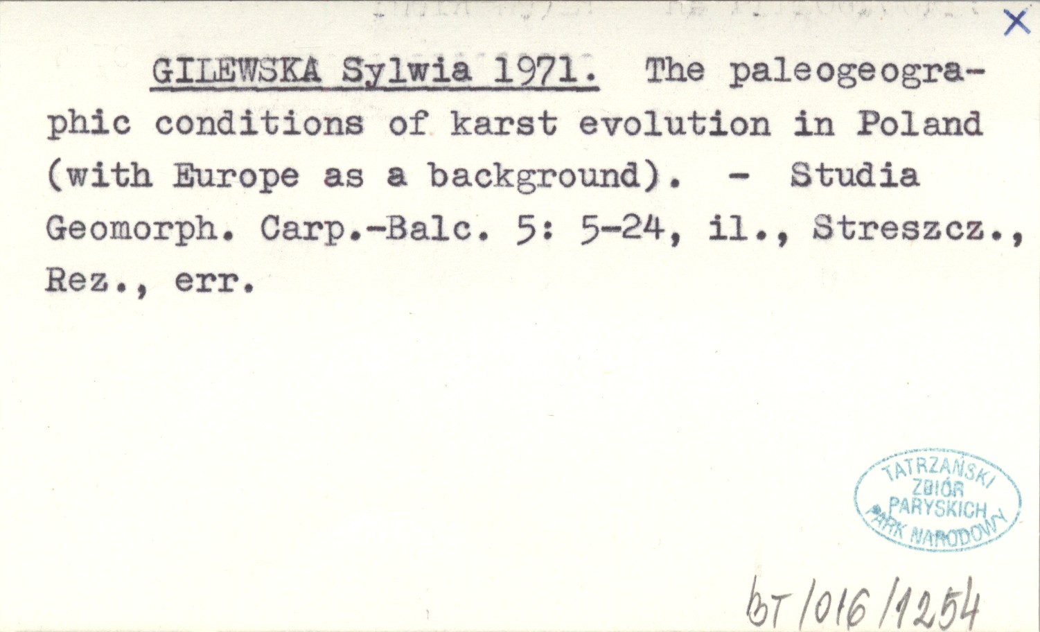 GILEWSKA Sylwia 1971 The paleogeographic conditions of karst evolution in Poland (with Europe as a background).