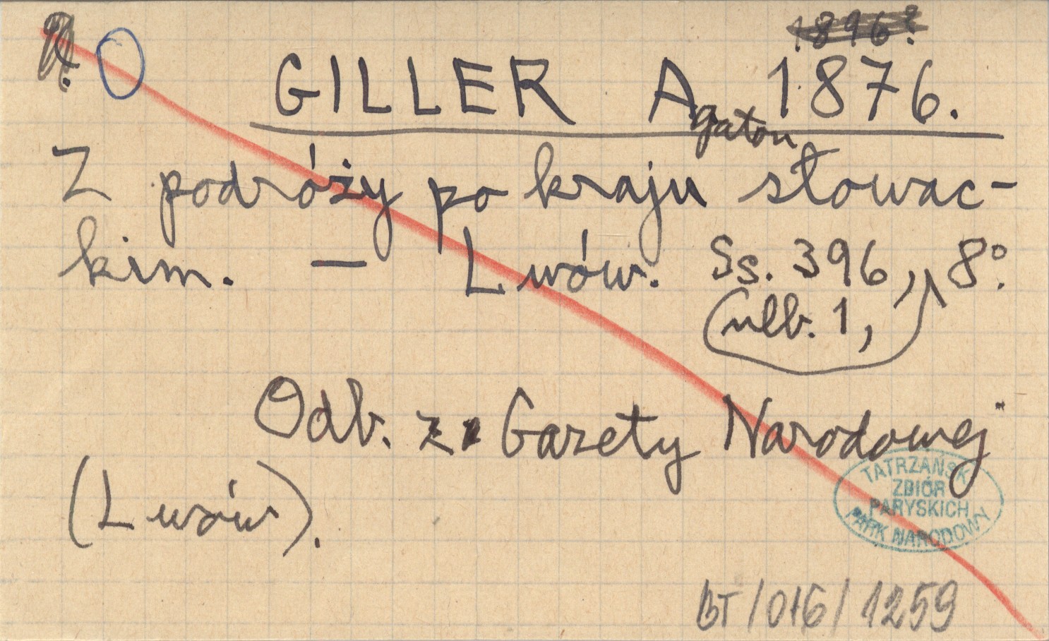 Lwów , 396 s., [1], 8°. Odb. z Gazety Narodowej (Lwów).