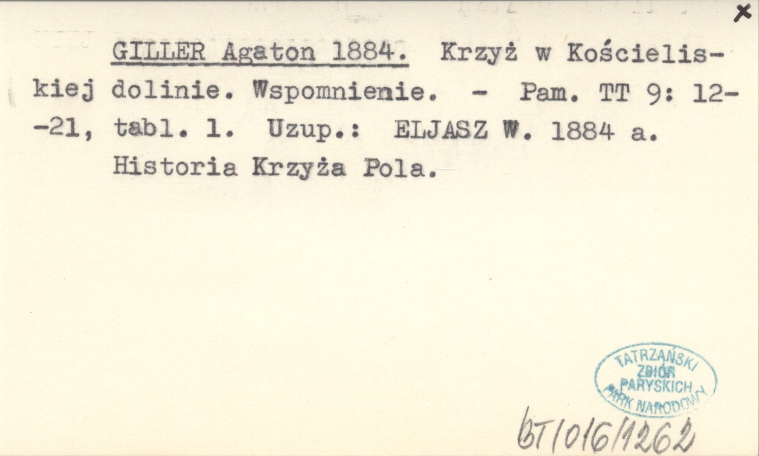 Pamiętnik Towarzystwa Tatrzańskiego, 9: 12-21, 1 k. tabl. Historia Krzyża Pola. Uzup.: ELJASZ W. 1884 a