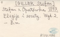 Stefan z Opatówka [GILLER Stefan] 1897 Elegije i sonety.