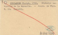 GIRTANNER Chstph. 1789 Histoire naturelle de la Marmotte.