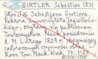 GIRTLER Sebastian 1831 Głos JW. Sebastjana Girtlera, Rektora Uniwersytetu Jagiellońskiego, czytany na publicznem Towarzystwa Nauk posiedzeniu d. 14 Lutego 1829 r. obeymuiący całorocznych czynności obraz.