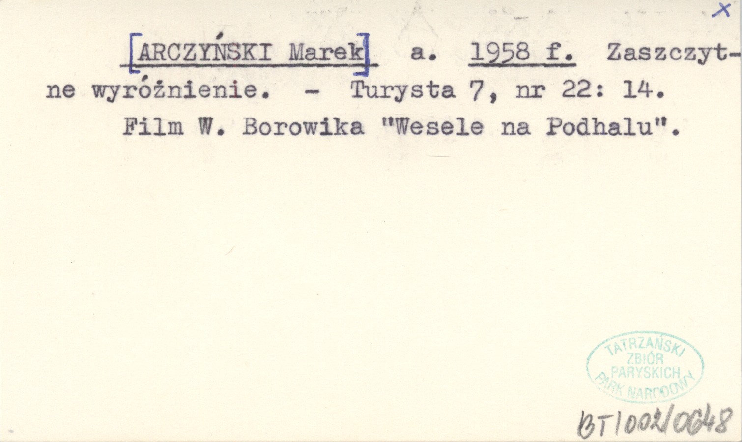 a. [ARCZYŃSKI Marek] 1958 f Zaszczytne wyróżnienie.