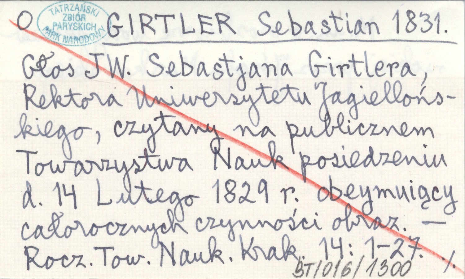 GIRTLER Sebastian 1831 Głos JW. Sebastjana Girtlera, Rektora Uniwersytetu Jagiellońskiego, czytany na publicznem Towarzystwa Nauk posiedzeniu d. 14 Lutego 1829 r. obeymuiący całorocznych czynności obraz.