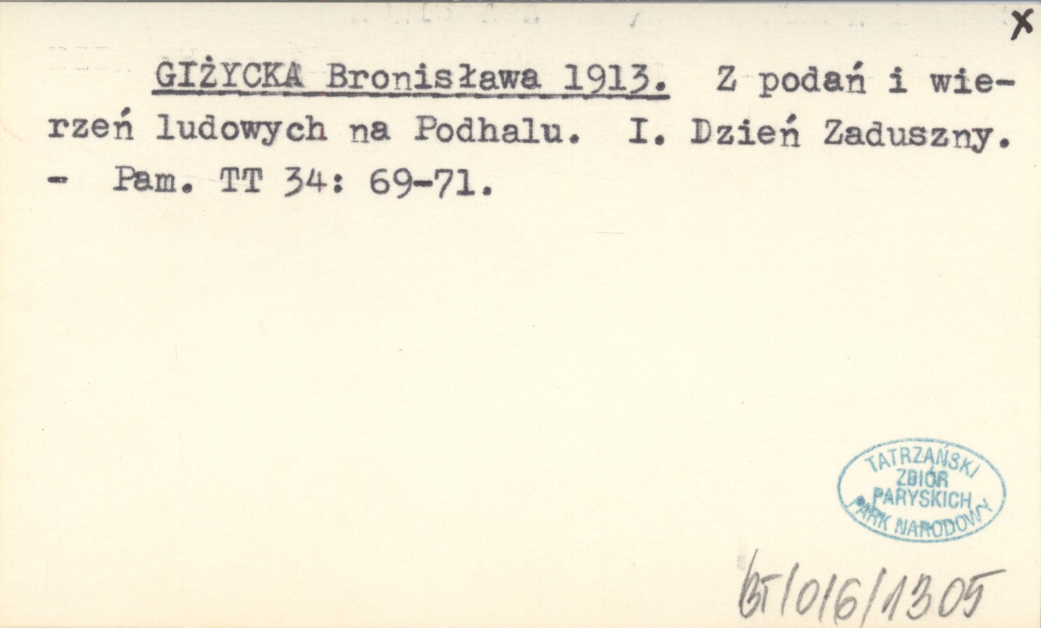 GIŻYCKA Bronisława 1913 Z podań i wierzeń ludowych na Podhalu. I. Dzień Zaduszny.