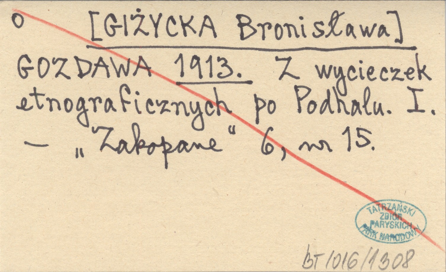 GOZDAWA [GIŻYCKA Bronisława] 1913 Z wycieczek etnograficznych po Podhalu. I.
