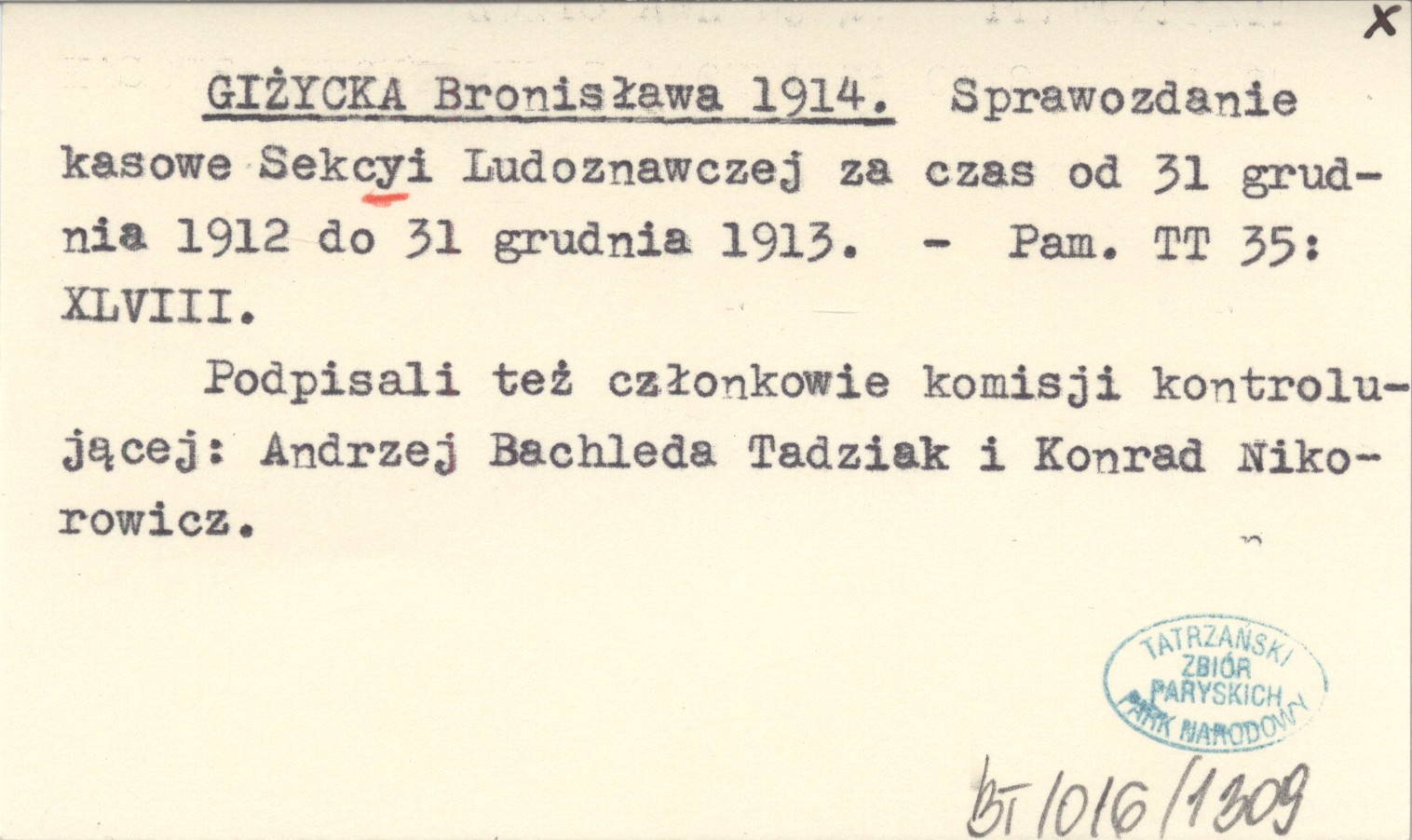 Pamiętnik Towarzystwa Tatrzańskiego, 35: 48. Podpisali też członkowie komisji kontrolującej: Andrzej Bachleda Tadziak i Konrad Nikorowicz.