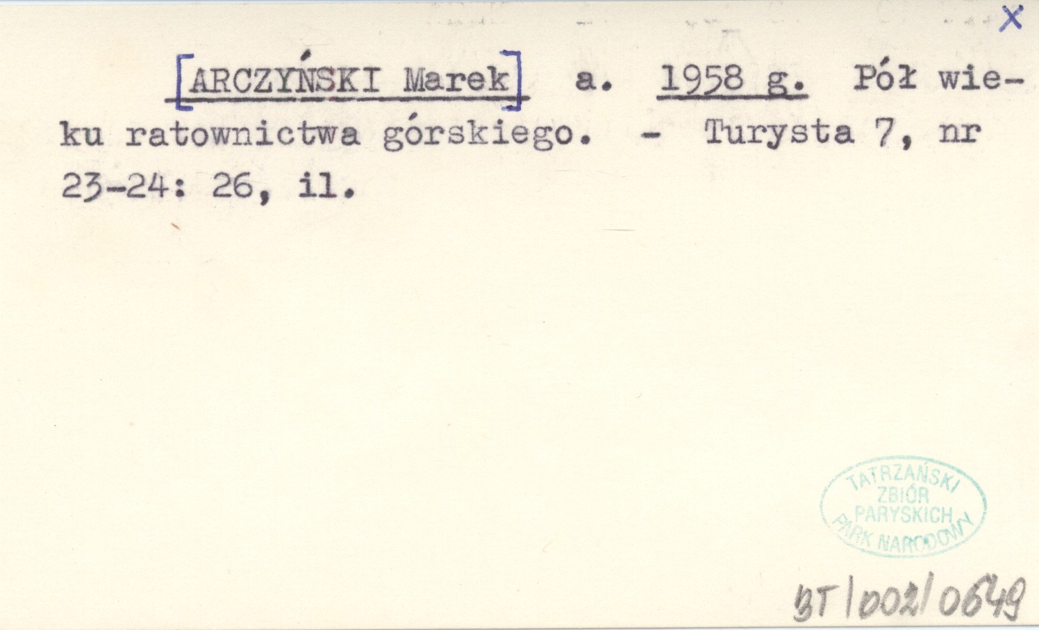a. [ARCZYŃSKI Marek] 1958 g Pół wieku ratownictwa górskiego.