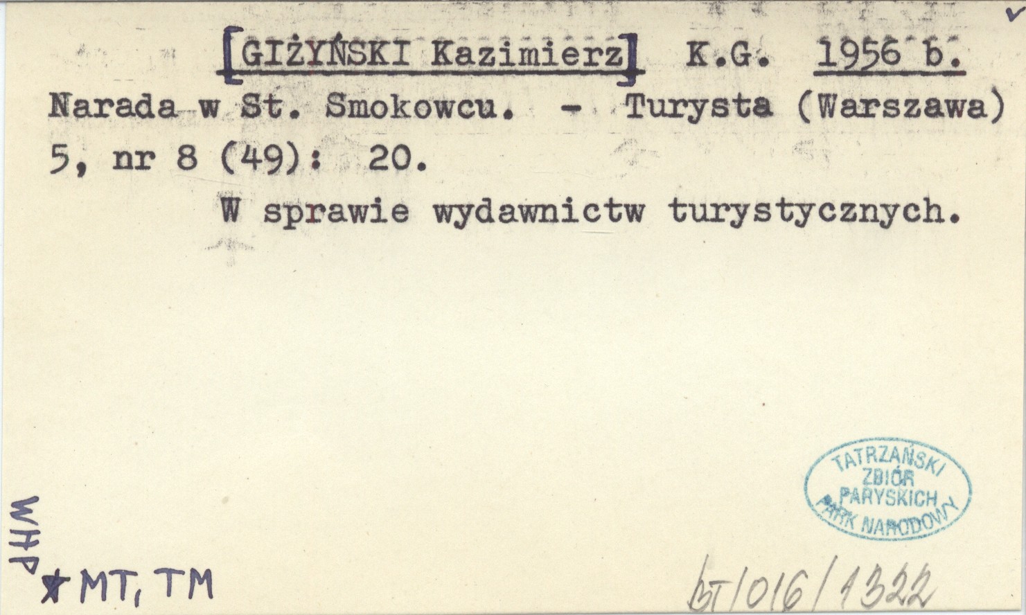 K.G. [GIŻYŃSKI Kazimierz] 1956 b Narada w St. Smokowcu.