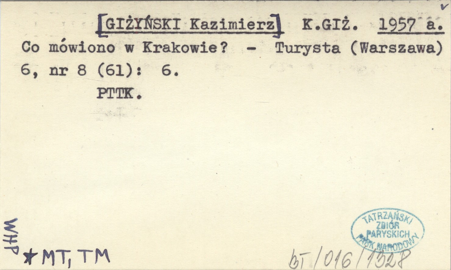 K.GIŻ. [GIŻYŃSKI Kazimierz] 1957 a Co mówiono w Krakowie?