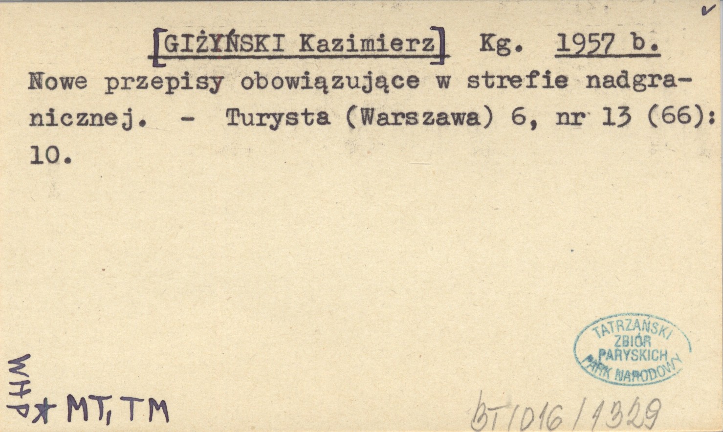 Kg. [GIŻYŃSKI Kazimierz] 1957 b Nowe przepisy obowiązujące w strefie nadgranicznej.