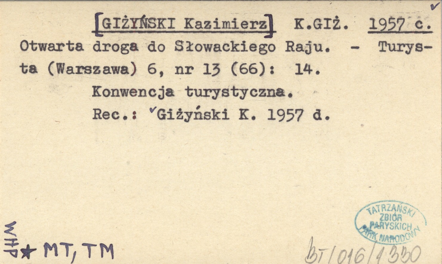 K.GIŻ. [GIŻYŃSKI Kazimierz] 1957 c Otwarta droga do Słowackiego Raju.