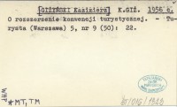 K.GIŻ. [GIŻYŃSKI Kazimierz] 1956 c O rozszerzenie konwencji turystycznej.