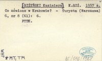 K.GIŻ. [GIŻYŃSKI Kazimierz] 1957 a Co mówiono w Krakowie?