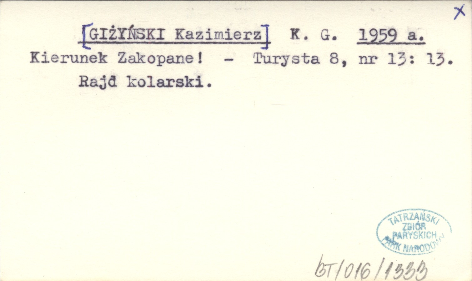 K. G. [GIŻYŃSKI Kazimierz] 1959 a Kierunek Zakopane!