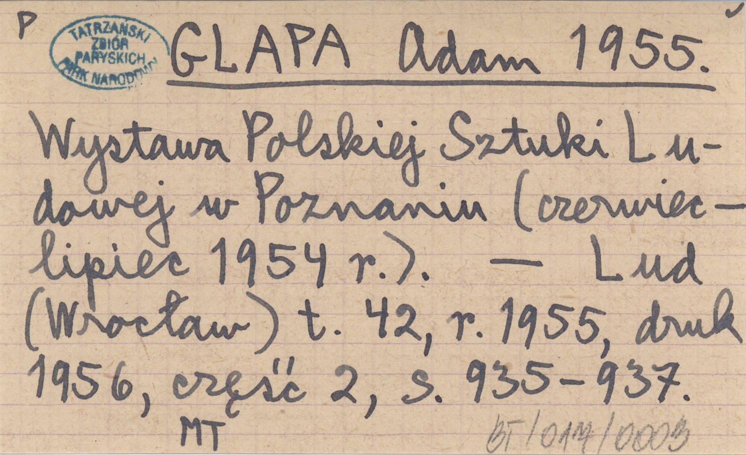 GLAPA Adam 1955 Wystawa Polskiej Sztuki Ludowej w Poznaniu (czerwiec-lipiec 1954 r.).