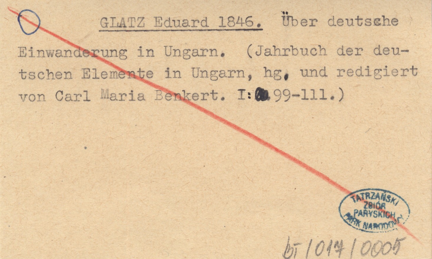 GLATZ Eduard 1846 Über deutsche Einwanderung in Ungarn.