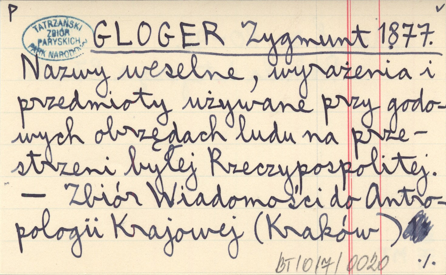GLOGER Zygmunt 1877 Nazwy weselne, wyrażenia i przedmioty używane przy godowych obrzędach ludu na przestrzeni byłej Rzeczypospolitej.