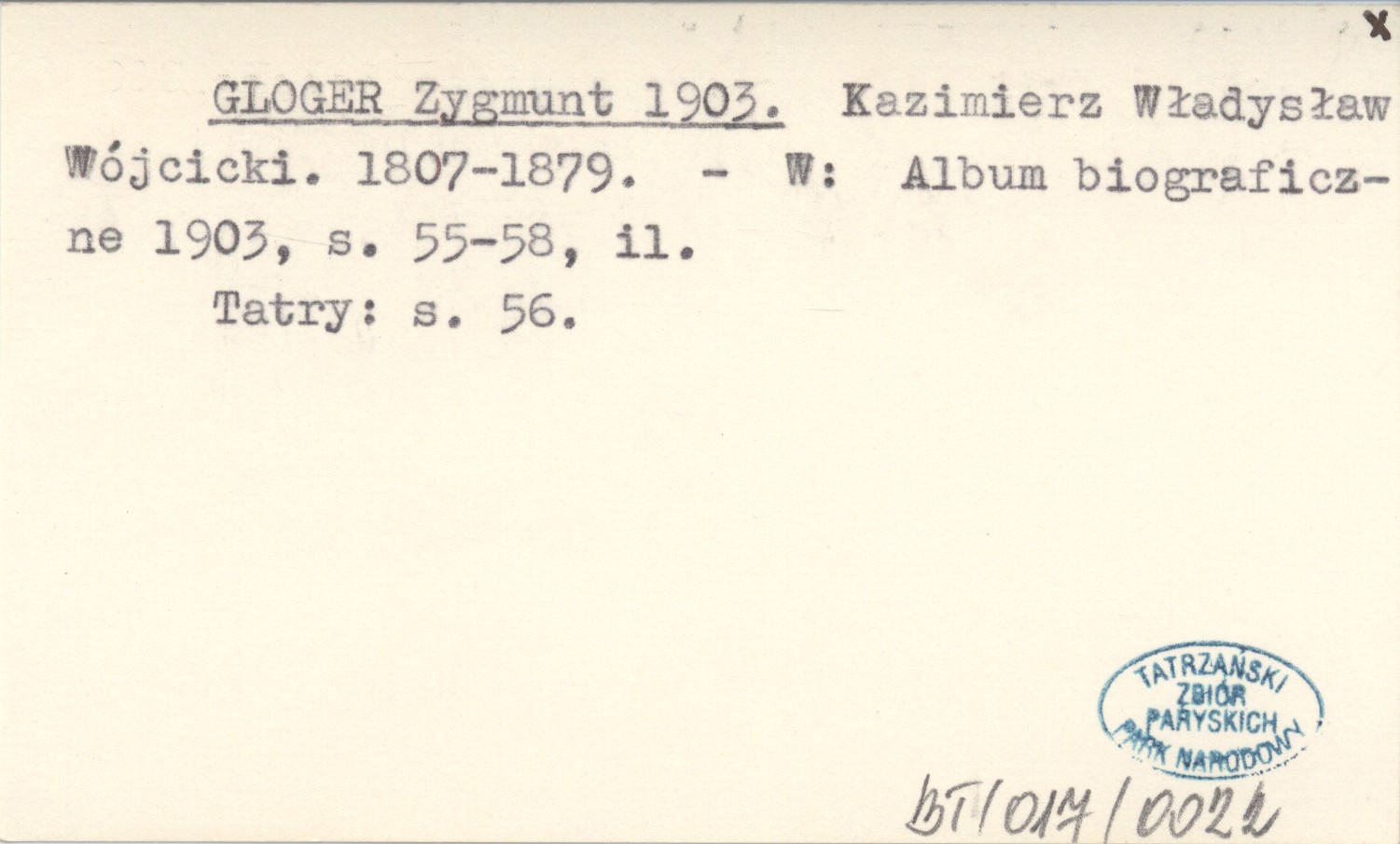 GLOGER Zygmunt 1903 Kazimierz Władysław Wójcicki. 1807-1879.