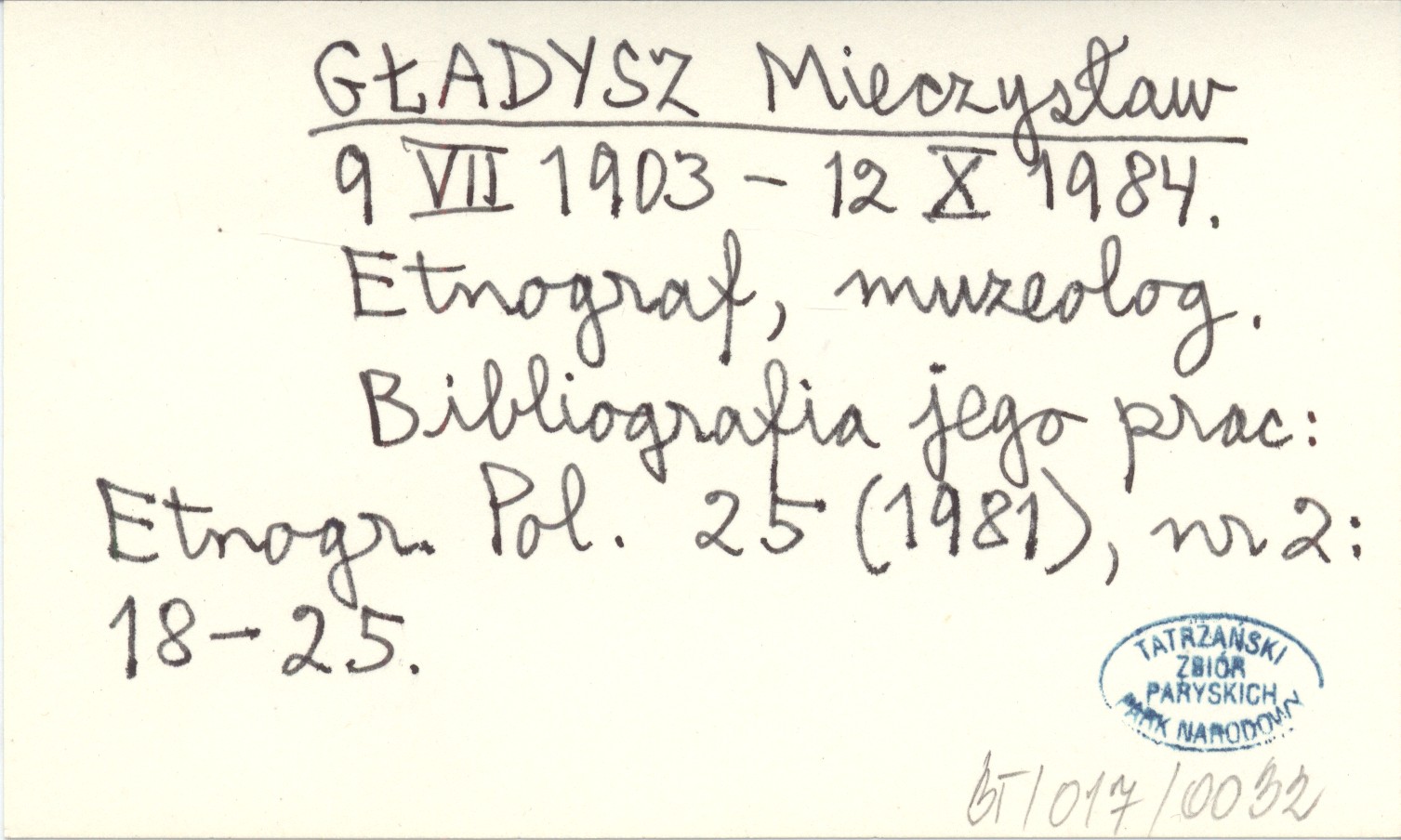 9 VII 1903 - 12 X 1984. Etnograf, muzeolog. Bibliografia jego prac: Etnogr. Pol. 25 (1981), nr 2: 18-25.