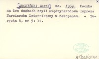 ma. [ARCZYŃSKI Marek] 1959 Kaczka na dwu deskach czyli Międzynarodowa Impreza Narciarska Dziennikarzy w Zakopanem.
