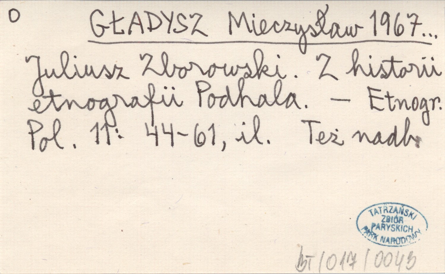GŁADYSZ Mieczysław 1967... Juliusz Zborowski. Z historii etnografii Podhala.