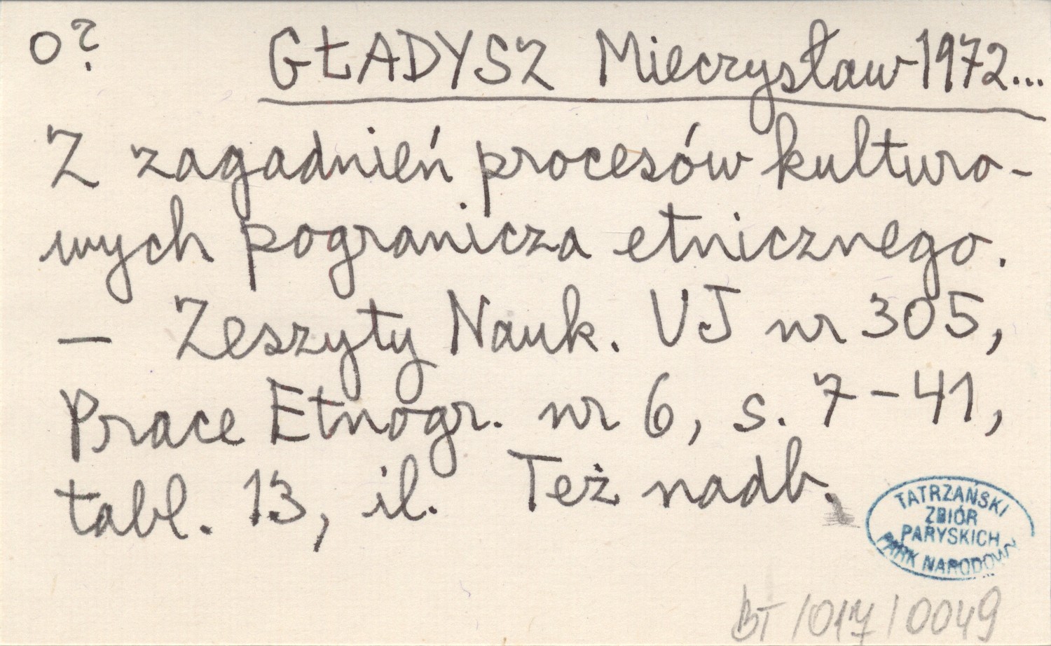 GŁADYSZ Mieczysław 1972... Z zagadnień procesów kulturowych pogranicza etnicznego.