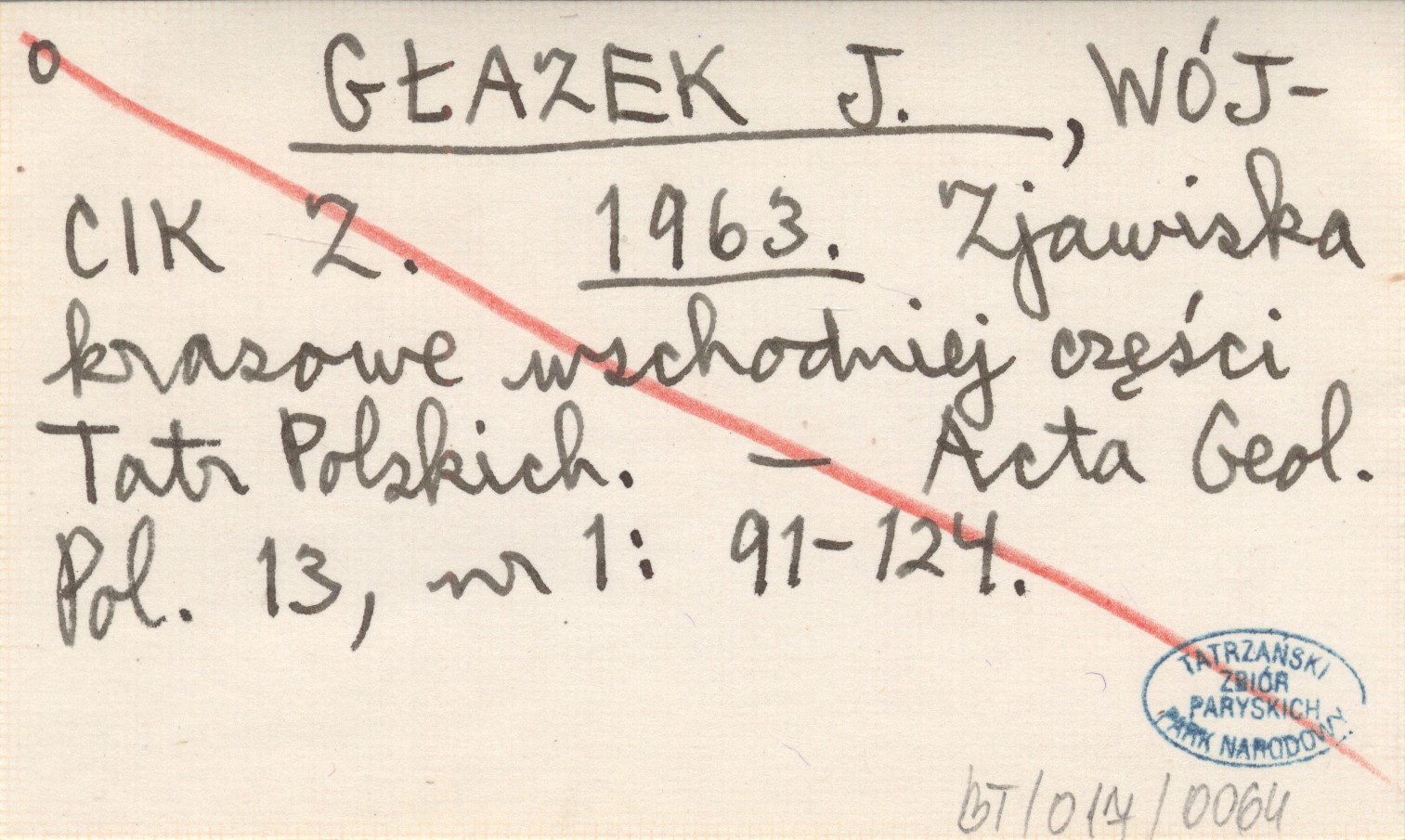 GŁAZEK J. WÓJCIK, Z. ; 1963 Zjawiska krasowe wschodniej części Tatr Polskich.