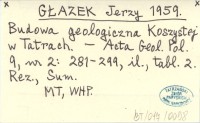 GŁAZEK Jerzy 1959 Budowa geologiczna Koszystej w Tatrach.
