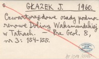 GŁAZEK J. 1960 Czwartorzędowe osady podmorenowe Doliny Waksmundzkiej w Tatrach.