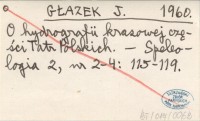 GŁAZEK J. 1960 O hydrografii krasowej części Tatr Polskich.