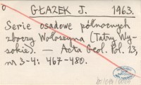 GŁAZEK J. 1963 Serie osadowe północnych zboczy Wołoszyna (Tatry Wysokie).