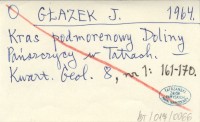 GŁAZEK J. 1964 Kras podmorenowy Doliny Pańszczycy w Tatrach.