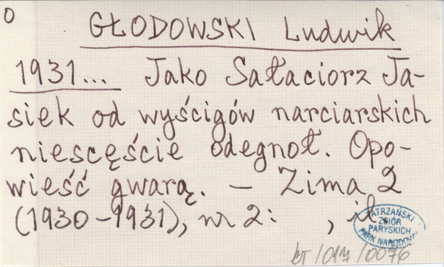 GŁODOWSKI Ludwik 1931... Jako Sałaciorz Jasiek od wyścigów narciarskich niescęście odegnoł. Opowieść gwarą.