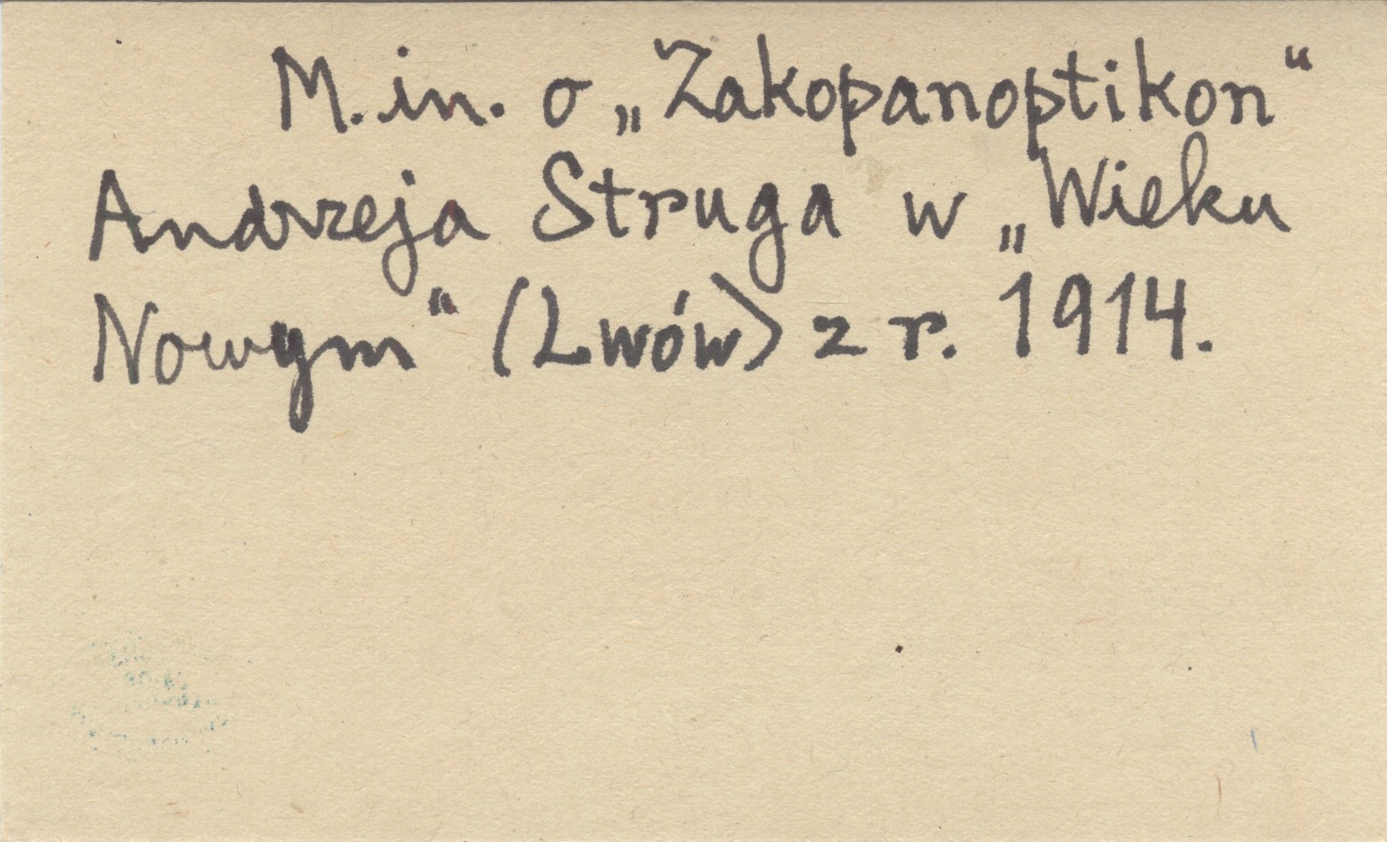 Wiadomości Literackie, 1, nr 35. M.in. o "Zakopanoptikon" Andrzeja Struga w "Wieku Nowym" (Lwów) z r. 1914.