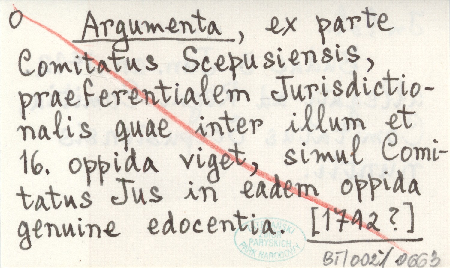 Argumenta, ex parte Comitatus Scepusiensis, praeferentialem Jurisdictionalis quae inter illum et 16. oppida viget, simul Comitatus Jus in eadem oppida genuine edocentia. Budae 3. Jun. an 1792 allegati ad Regni Comitia Comitatus Scepusiensis nuntii. [1792?]