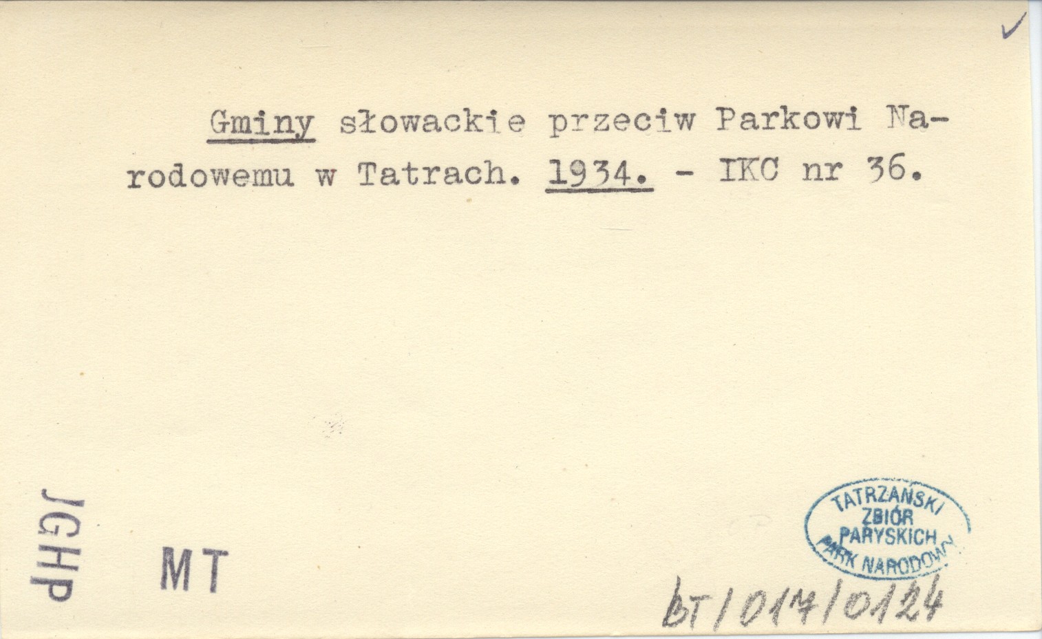 Gminy słowackie przeciw Parkowi Narodowemu w Tatrach. 1934