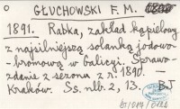 GŁUCHOWSKI F. M. 1891 Rabka, zakład kąpielowy z najsilniejszą solanką jodowo-bromową w Galicyi. Sprawozdanie z sezonu z r. 1890.
