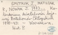 GMITRUK J. MATUSAK, P. ; NOWAK, J. ; 1983... Kalendarium działalności bojowej Batalionów Chłopskich 1940-45.