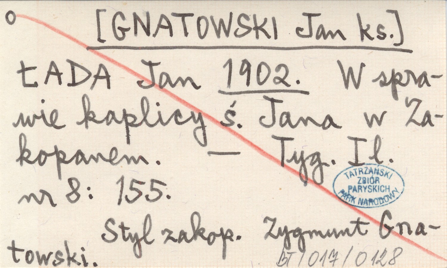 ŁADA Jan [GNATOWSKI Jan ks.] 1902 W sprawie kaplicy ś. Jana w Zakopanem.