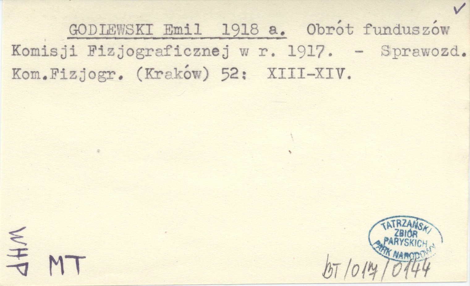GODLEWSKI Emil 1918 a Obrót funduszów Komisji Fizjograficznej w r. 1917.