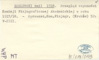 GODLEWSKI Emil 1918 Przegląd czynności Komisji Fizjograficznej Akademickiej w roku 1917/18.