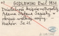 GODLEWSKI Emil 1937 Działalność księcia metropolity Adama Stefana Sapiehy w okresie wielkiej wojny.