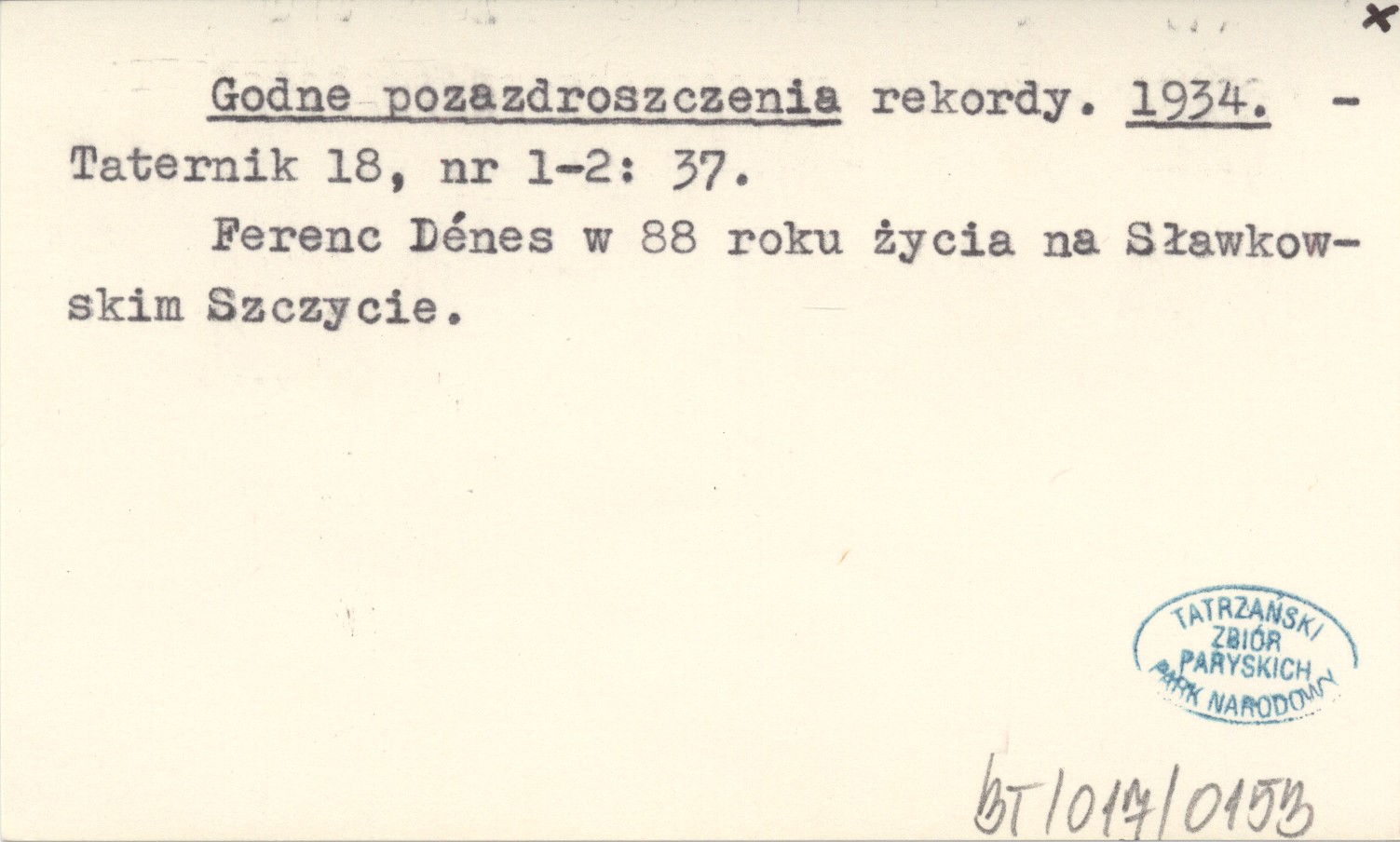 Taternik, 18, nr 1-2: 37. Ferenc Dénes w 88 roku życia na Sławkowskim Szczycie.