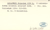 GODŁOWSKI Zbigniew 1934 b O uzdrowiskowem leczeniu schorzeń krwi.