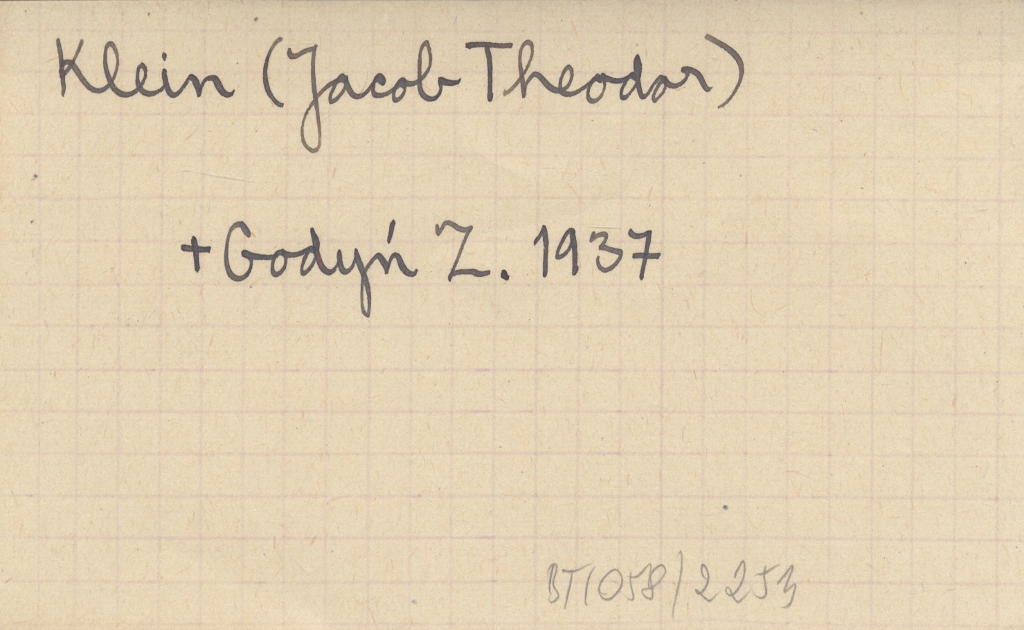 GODYŃ Zygmunt 1937 Jakób Teodor Klein, przyrodnik XVIII w.