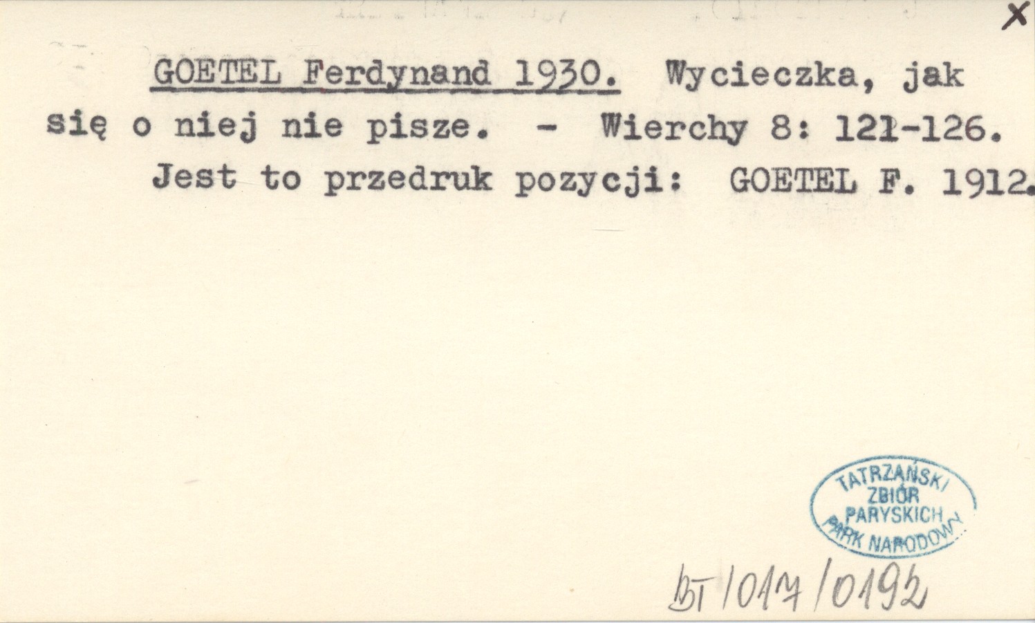 Wierchy, 8: 121-126. Jest to przedruk pozycji: GOETEL F. 1912.