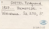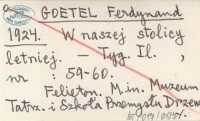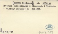 el. [GOETEL Ferdynand] 1930 a Literaci cudzoziemscy w Pieninach i Tatrach.