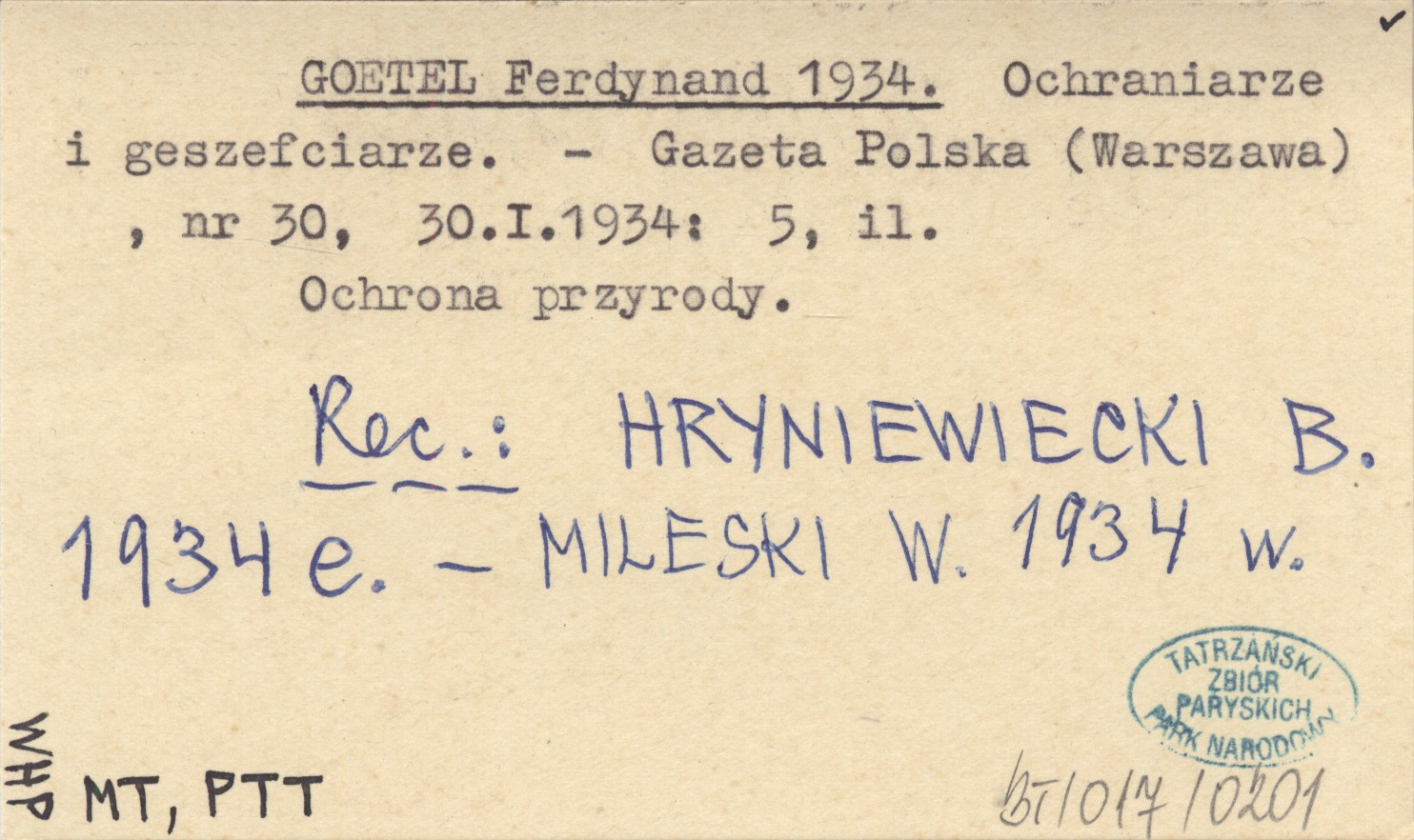 Gazeta Polska (Warszawa) , Nr 30: 5, il., 30 I 1934. Ochrona przyrody. REC: HRYNIEWIECKI B. 1934 e ; MILESKI W. 1934 w ;