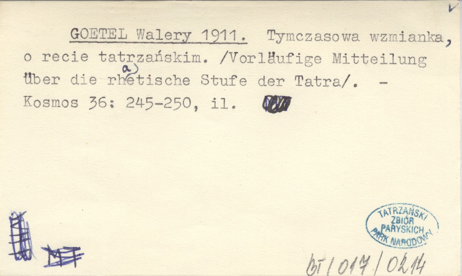 GOETEL Walery 1911 Tymczasowa wzmianka, o recie tatrzańskim. (Vorläufige Mitteilung über die rhaetische Stufe der Tatra).